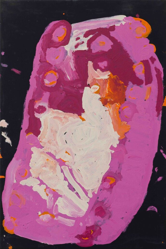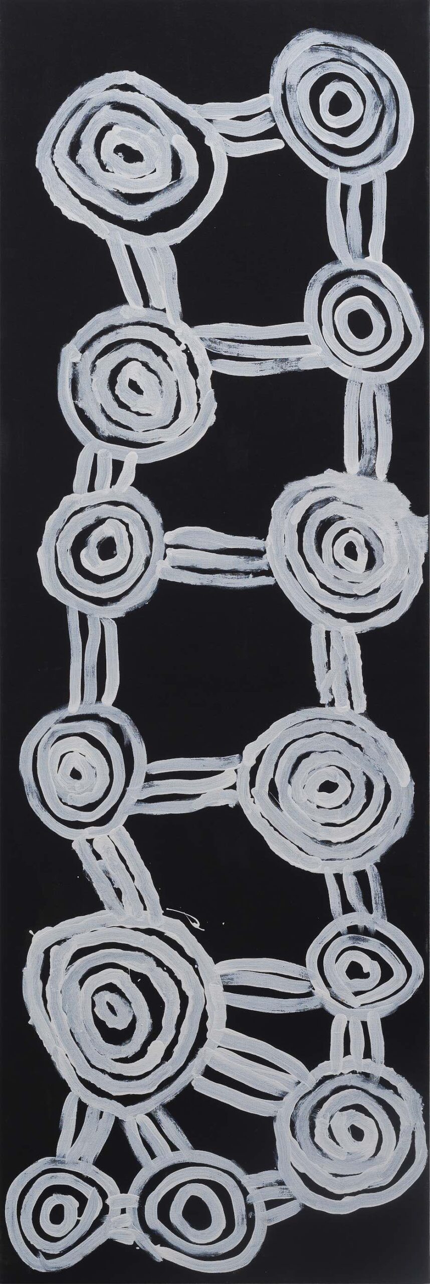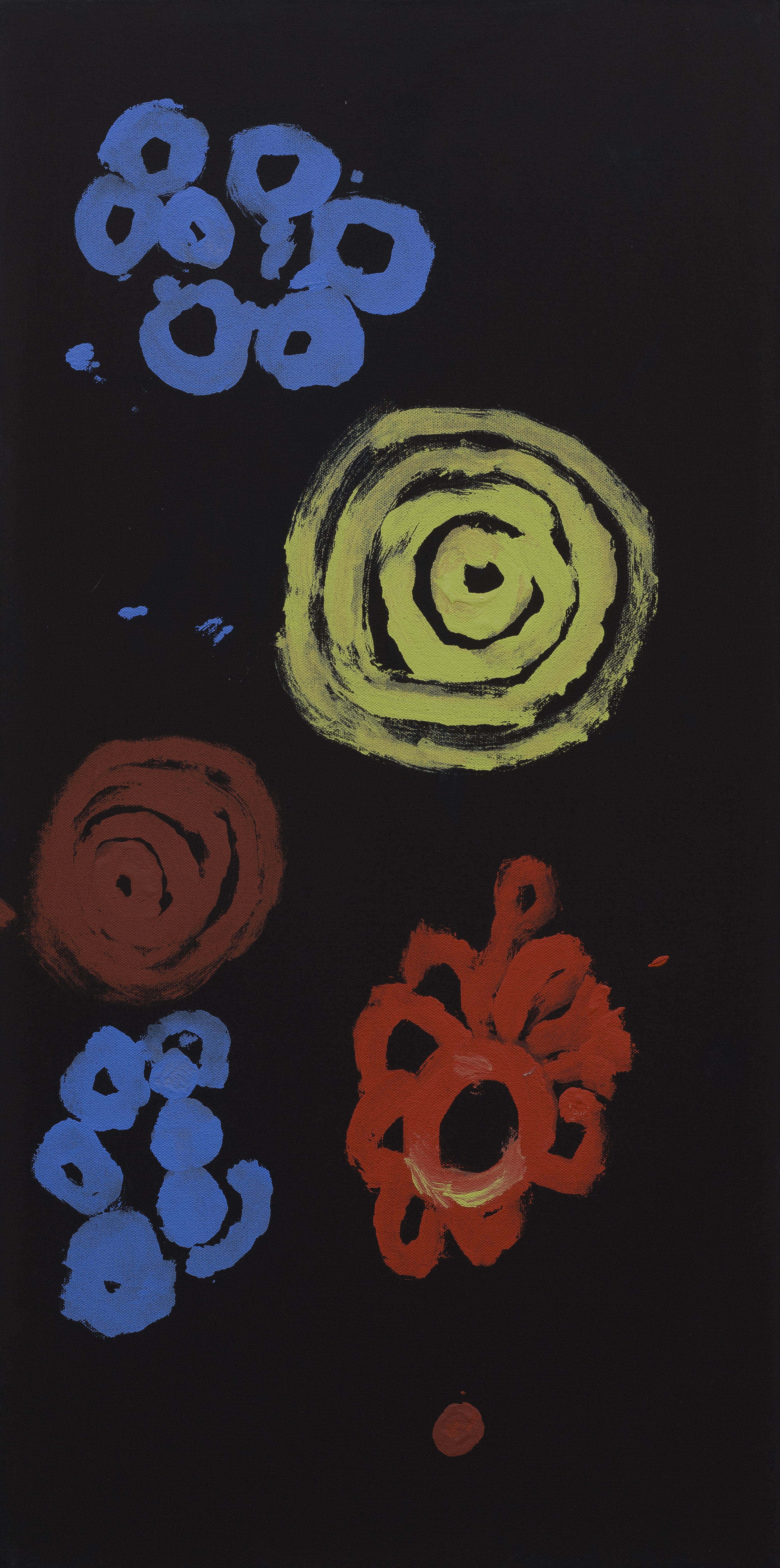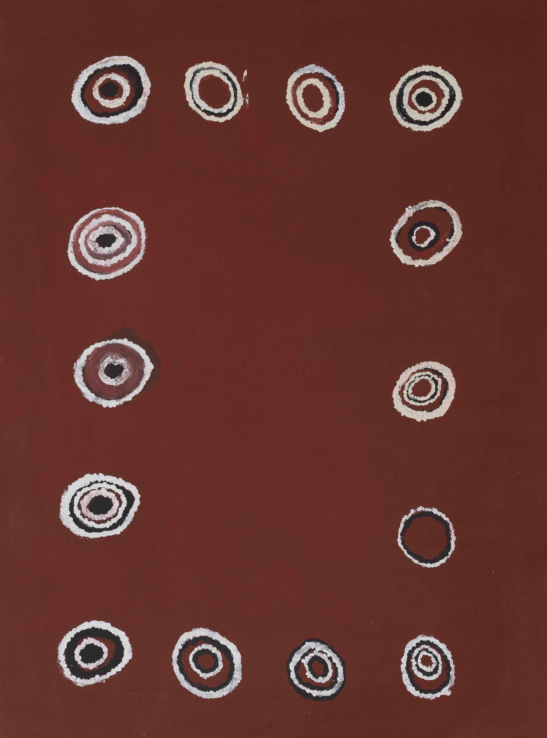 “The Wanarn paintings are accomplished with confidence and ease, over tea or television, on the verandah or in bed. The precise interpretation of the paintings coming from the painting programme, and their relationship to tjukurrpa (the Dreaming) remains obscure because they are made by people who are experiencing the end of their lives, with sensibilities far from the anxieties of life as we know it.