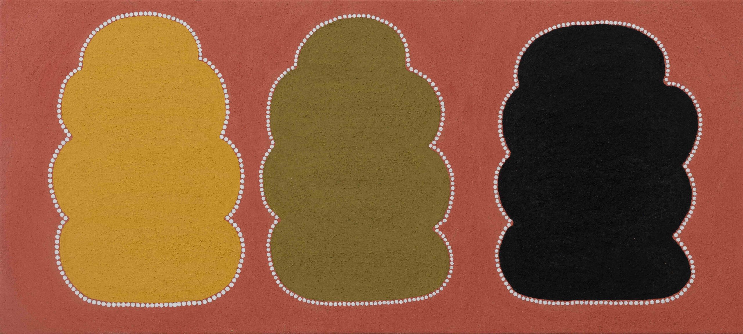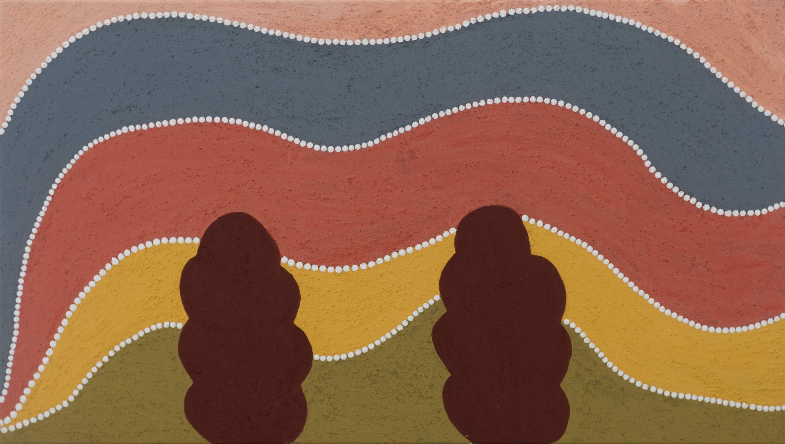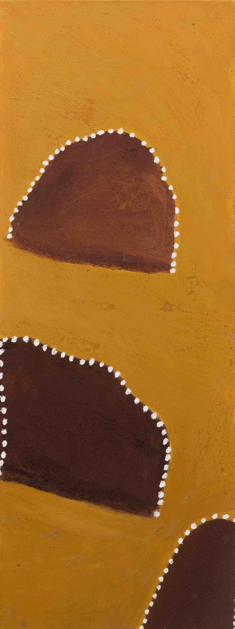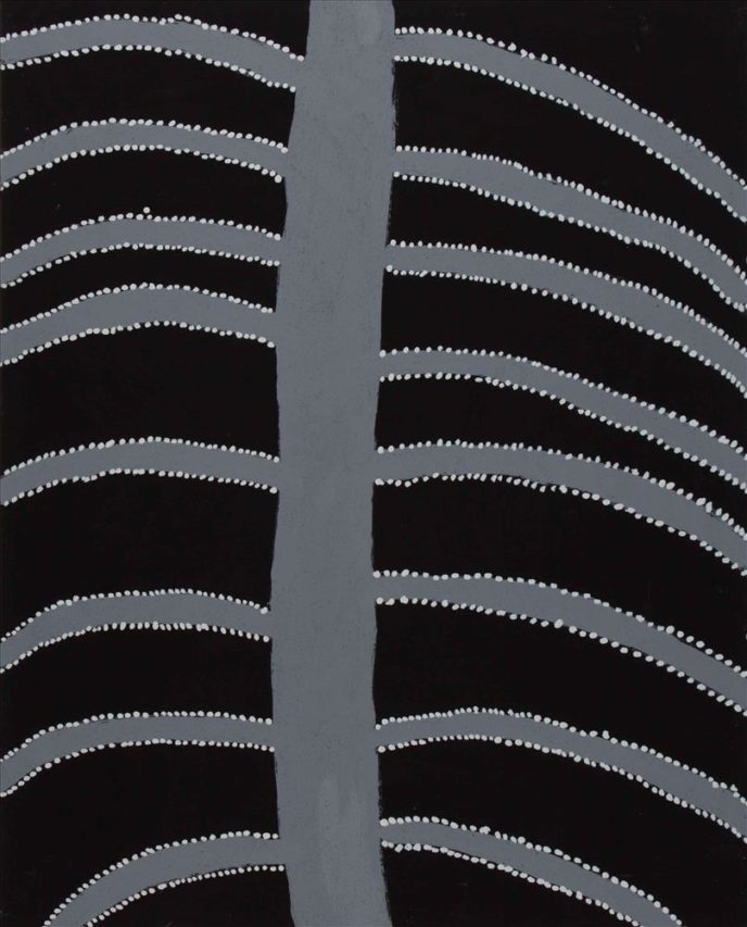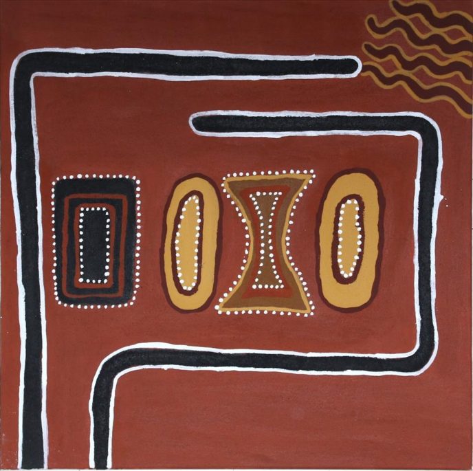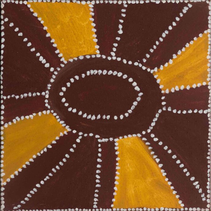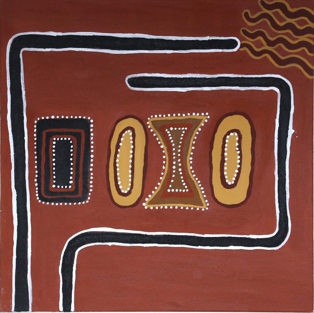 The Gija artists of Warmun paint their country using only ochres dug from their land. Each canvas is painted using hand-collected and crushed natural pigments in a luscious array of earth tones. Artworks from Warmun draw on traditional Ngarrangkarni (Dreaming) stories as well as on contemporary experience, helping maintain cultural connections to country and keeping stories alive in a rapidly changing environment.